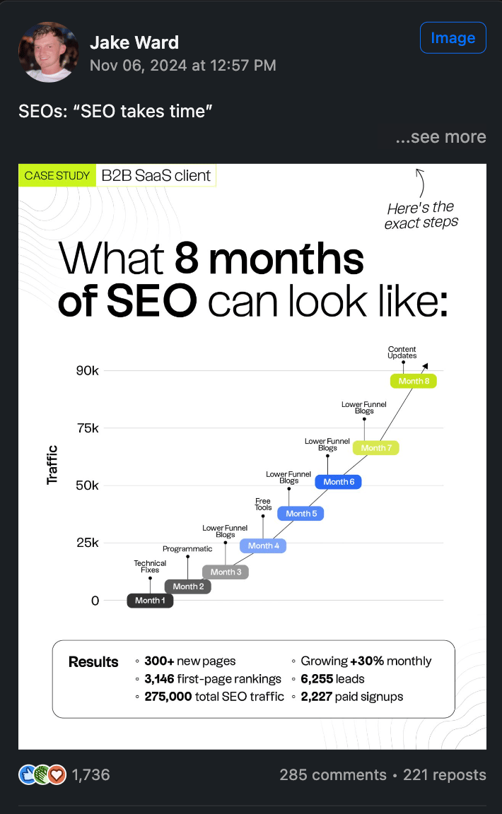 winning keyword use: Case study - 8 months - here’s the exact stepsSocial proof: Visible skill show-case via client results.
