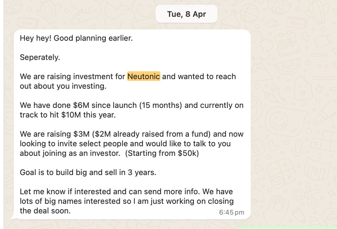 Ladies and gentlemen, I’m so excited to announce that I am now an angel investor and shareholder in Neutonic my favorite energy drink.