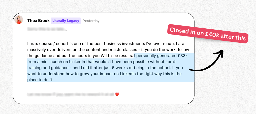 And this is something one of our Literally Academy members Thea nailed for her first launch on LinkedIn.