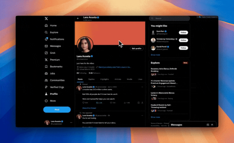 Browse through all posts on Twitter (x) using your keyword choice and filters.