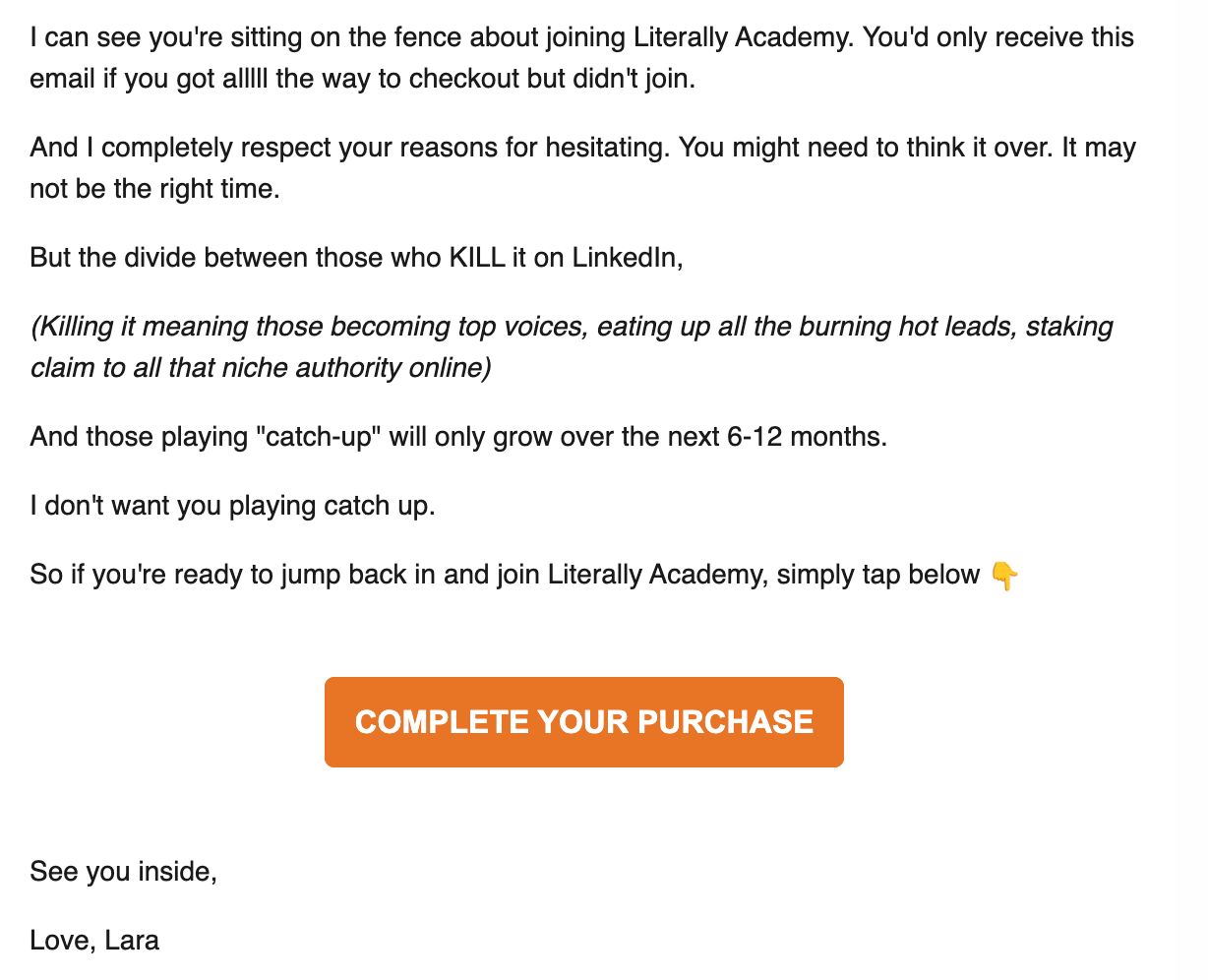 The next email of this sequence will show you the BTS of the email campaign we’ve run for the launch of Literally Academy and Content Code to gain attention and conversion.