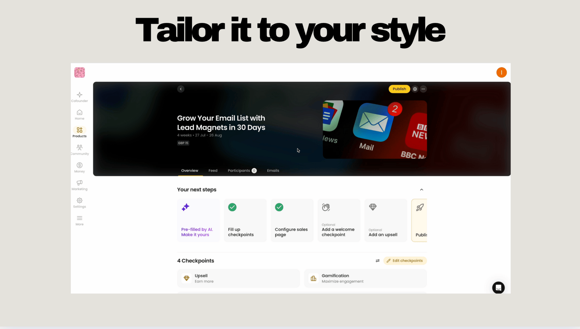 3) Add your specific knowledge fast using AI and gamefy using Nas’ tools for retention and customer satisfaction
